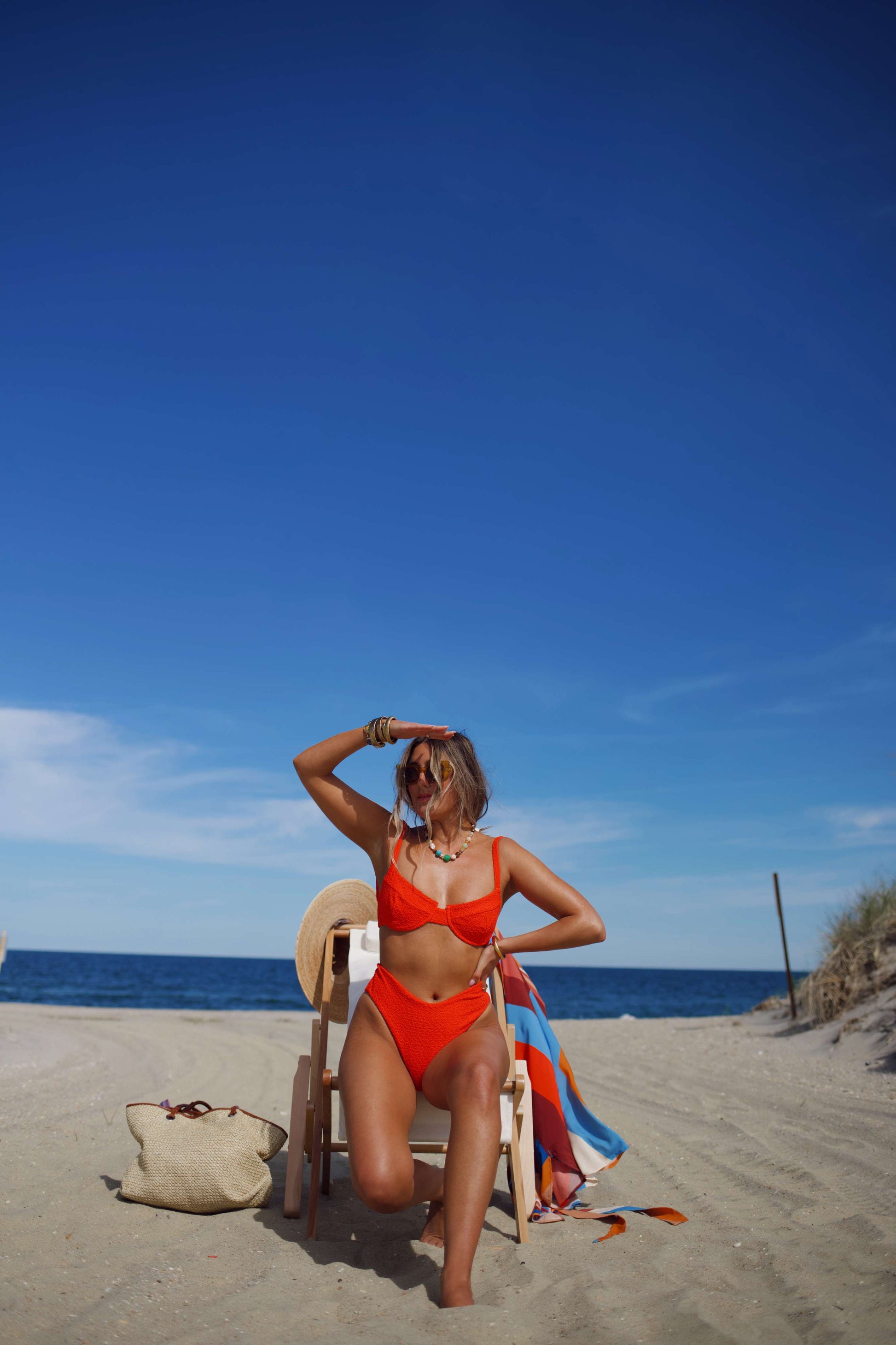 “This is one of my favorite colors ever! & I love it with a good tan -- I also think it just makes you look tanner haha. The top is super supportive but comfortable (nothing strange digging into you!) and the bottoms are just perfect (IMO) good coverage, but still showing the *right* amount of skin. I love pairing this back to the Paloma pants for an easy beach look.”- Caitlyn
