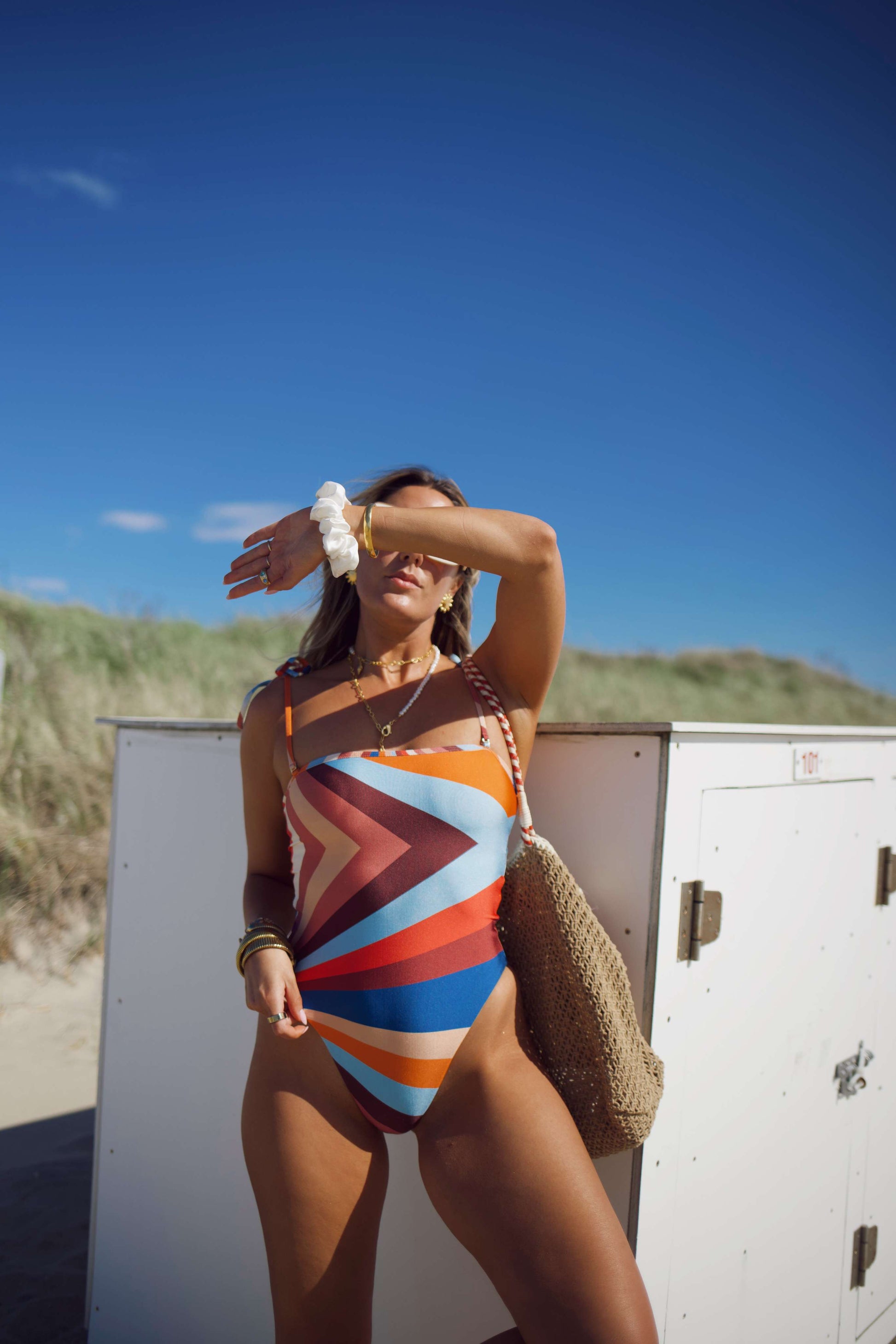 “I knew this was probably going to be one of my favorites - the prismatic print in the one piece is just such a stunner. I love the fit of this one because it is super practical and a great suit to be active in because of the removable straps.”- Caitlyn
