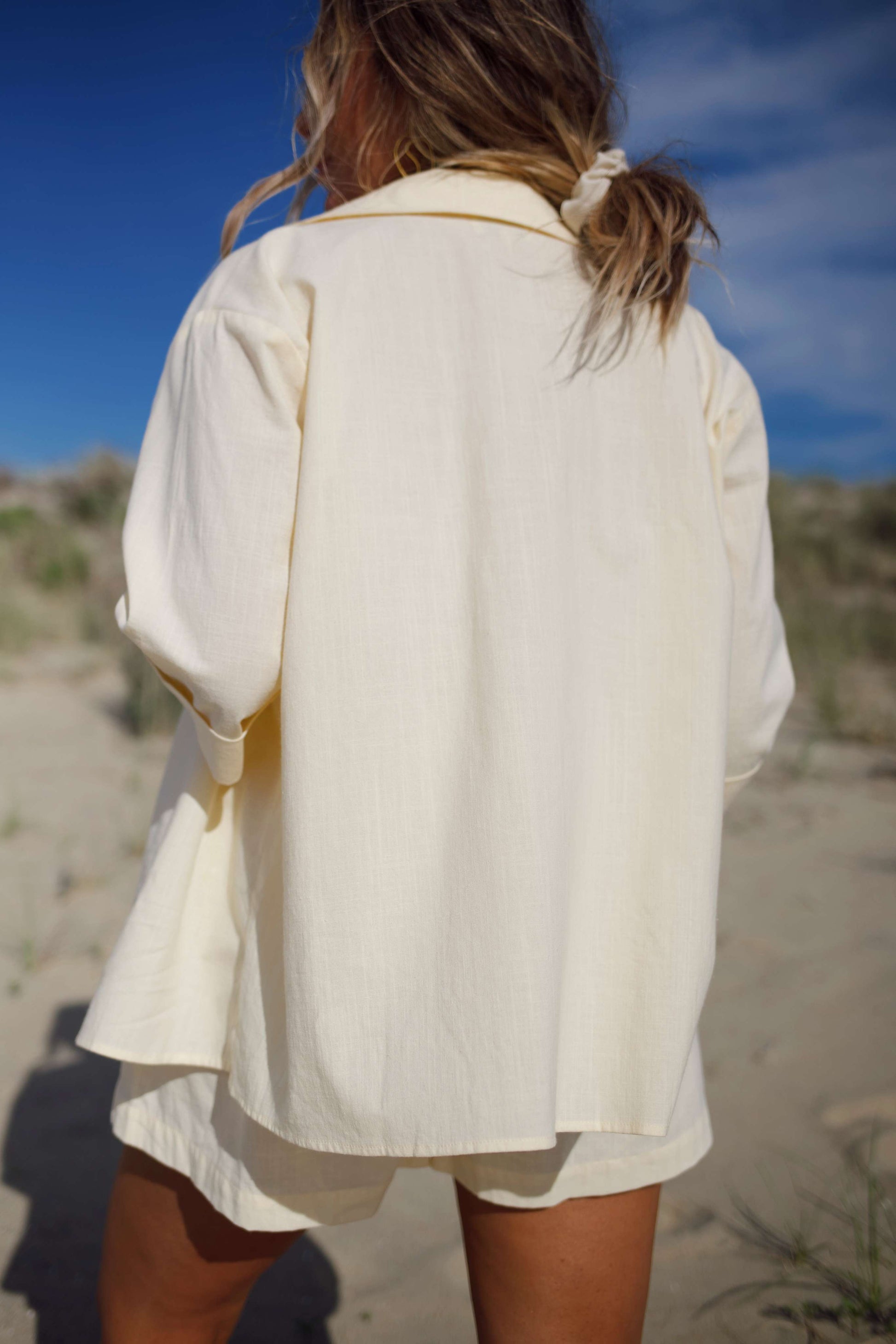 Effortlessly cool and relaxed, the Set Sail Button Down Shirt features an oversized fit, natural shell buttons, and rolled cuffs for laid-back style. Made from a breathable cotton-linen blend, it’s perfect for layering over your favorite summer looks or pairing with the Set Sail Shorts for a complete beach-ready set.